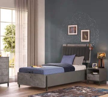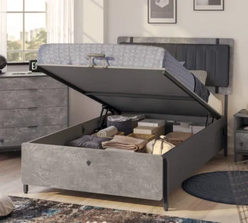 Postelja Space Grey ponuja več kot le prostor za počitek. Pod posteljo je prostor za shranjevanje, ki vam omogoča, da na iznajdljiv način skrijete neuporabljene stvari, kar ustvarja prijeten in urejen prostor, ki je idealen za sproščujoč spanec. To je zasnovano tako, da izkoristi vsak centimeter vaše spalnice in prinaša učinkovite rešitve za shranjevanje v vaš dom.