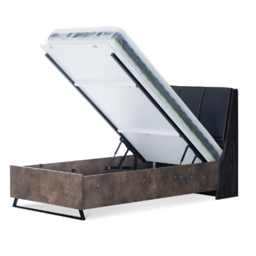 Postelja Kozmos je elegantno oblikovan kos pohištva, ki se odlikuje s temačnim dizajnom in vzglavjem prestižnega videza. Je dvižna, kar pomeni, da ponuja dodaten prostor za shranjevanje. Izdelana je iz iverne plošče, zaščitene z ABS robnim trakom, in sintetičnega usnja.