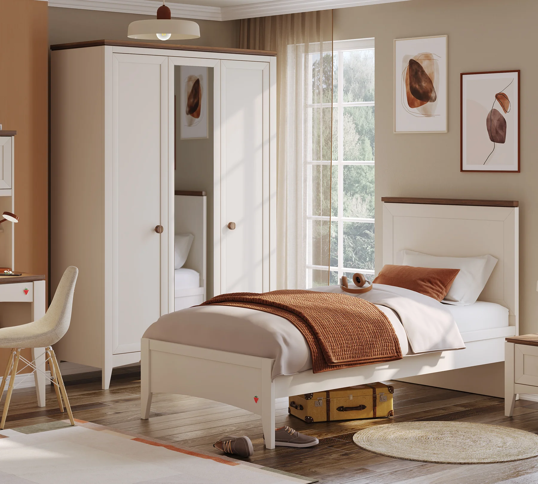 S svojo elegantno in funkcionalno zasnovo postelja Lapel v barvni shemi Hamilton in Vario Mink Cream doda spalnicam sodoben pridih. Stranske plošče, vznožje in okvir so v barvi Mink Cream, zaradi česar je estetsko privlačna.