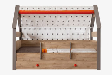Postelja Montessori Star, oblikovana v duhu Montessori pedagogike, je več kot le prostor za spanje – je prostor za igro, učenje in razvoj otrokove domišljije. Zasnovana kot celotna hiška s tekstilno strehico, ta postelja ustvarja varen in spodbuden prostor, ki spodbuja samostojnost in kreativnost.