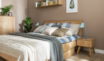 Minimalistična postelja Nature združuje naraven slog s sodobnim. Zahvaljujoč njenem nevtralnem videzu, obogatenim s furnirjem hrasta, jo boste brez težav lahko kombinirali s številnim pohištvom spalnic. Če želite privarčevati na prostoru, jo lahko kombinirate s kompatibilnim talnim predalom, izdelanim posebej za posteljo Nature.