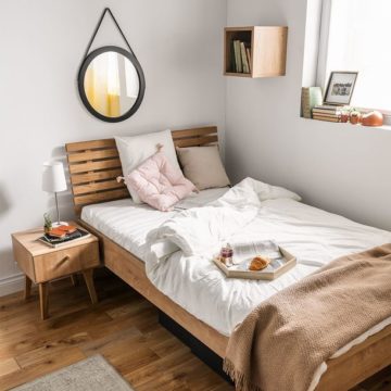 Postelja Nature je izdelana v naravnem slogu, ki ga odlikuje hrastov furnir. Videz postelje dopolnjuje naglavna plošča. Izdelana je iz melaminsko zaščitene iverne plošče. Če želite privarčevati na prostoru, jo lahko kombinirate s kompatibilnim talnim predalom, izdelanim posebej za posteljo Nature.