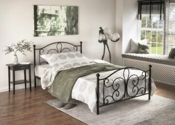 Kovinska postelja za vzmetnico dimenzije 90 x 200 cm. Estetskega in elegantnega videza, ki prispeva k vizualni dovršenosti spalnice. Izdelana je iz praškasto lakiranega jekla. Vzmetnica ni vključena v ceno.