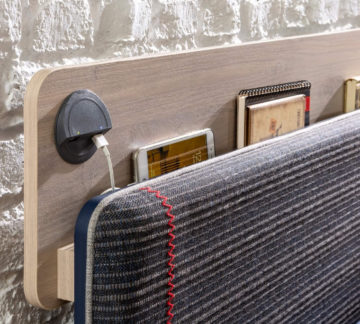 Odlično se kombinira z omarami, nočnimi omaricami in ostalimi kosi pohištva iste linije Trio. Vso pohištvo se proizvaja v skladu s TUV standardom, kar pomeni, da je za zaščito, zdravje in ergonomičnost samih izdelkov maksimalno poskrbljeno. Plastični deli, ki se uporabljajo, so izdelani iz kvalitetne ABS plastike (enako kot LEGO kocke).