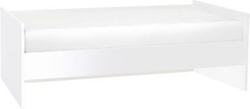 Minimalistična postelja Young users je na voljo v beli in črni barvi. Njen videz dopolnjuje rahlo dvignjen okvir. Spodaj ima prostor za bodisi predal za shranjevanje bodisi dodatno ležišče.
