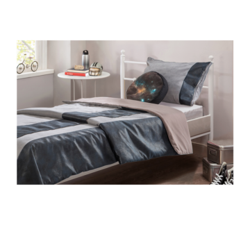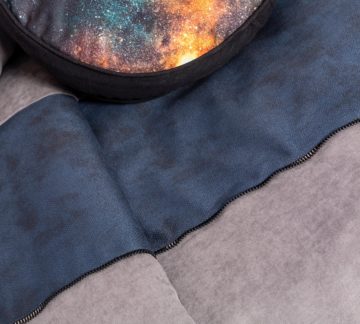 Posteljnina je zagotovo nepogrešljiv dodatek v otroški sobi. Narejena je iz poliestra in eko usnja v kombinaciji sive in črne barve. Za dekoracijo ima dodane črne okrasne zadrge. Zahvaljujoč sintetičnemu polnilu lahko pregrinjalo uporabite tudi v hladnejših dneh.