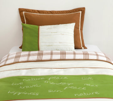 Posteljnina je zagotovo nepogrešljiv dodatek v otroški sobi. Narejena je iz kombinacije bombaža in poliestra v nežnih odtenkih krem barve, rjave in zelene. Zahvaljujoč sintetičnemu polnilu lahko pregrinjalo uporabite tudi v hladnejših dneh. V ceno je vključeno pregrinjalo in ena okrasna blazina.