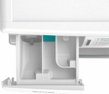 Upravljanje poteka z gumbom, stroj pa ima energijski razred B, kar pomeni, da je varčen z energijo. Inverter PowerDrive motor omogoča večjo učinkovitost in tišje delovanje. Razred učinkovitosti ožemanja in hrupa ožemanja sta oboje B. Barva izdelka je bela.