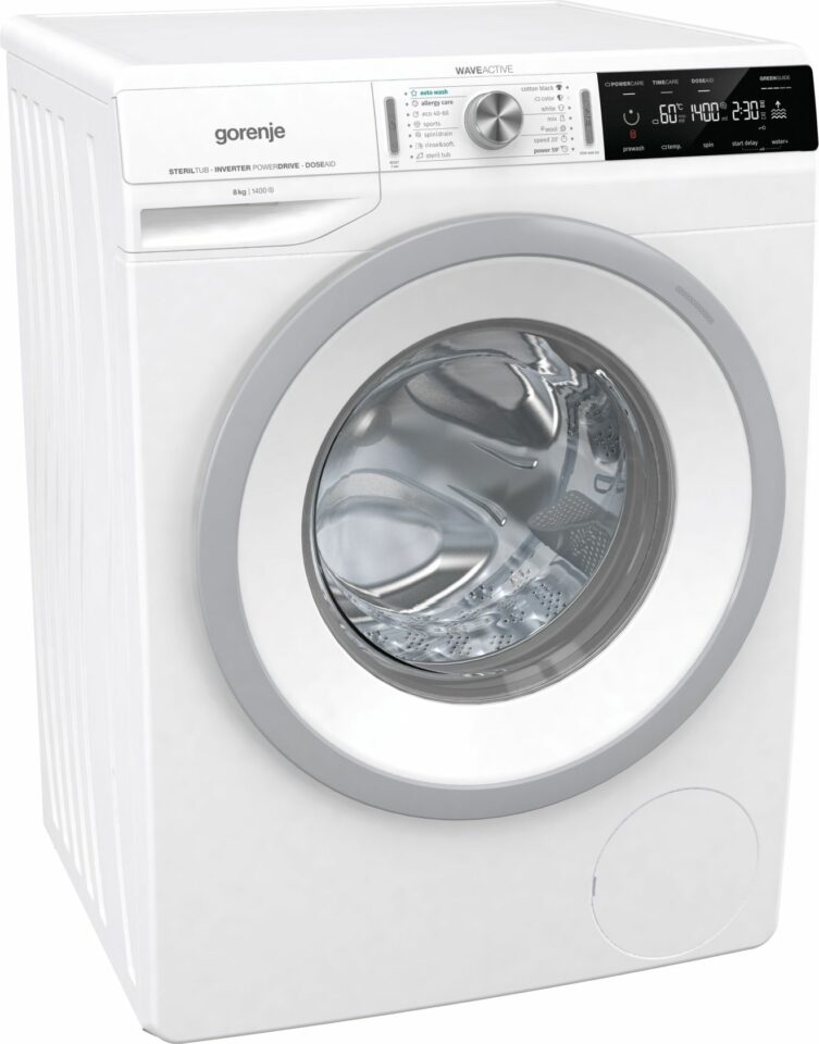 Boben WaveActive zagotavlja nežno in učinkovito pranje, osnovni programi pa vključujejo bombaž, mix sintetika in volno/ročno pranje. Pralni stroj lahko opere do 8 kg perila naenkrat. LED prikazovalnik omogoča enostaven pregled in upravljanje nastavitev.