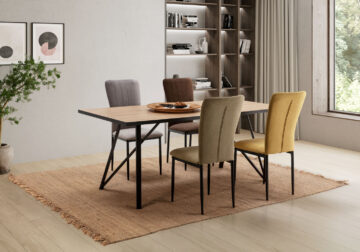 Pravokotna Jedilniška Miza Myla: Myla je prefinjena in elegantna jedilniška miza, ki bo nedvomno postala osrednji del vaše jedilnice. Meri 180 x 90 cm in ima naravno barvo ter robove Bocamina, ki dodajo vizualni kontrast in prefinjenost. Ta miza je idealna za vsakodnevne obroke ali posebne priložnosti, ko želite gostom ponuditi udoben in stilski prostor za uživanje v obroku.