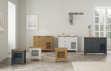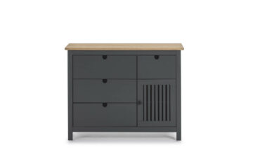 Dizajn predalnika Bruna je preprost in sofisticiran, s čistimi linijami, ki se enostavno vključijo v različne dekorativne sloge. Tako naravna kot siva različica se lepo podata v sodobne ali tradicionalne interjerje.