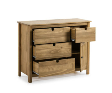 Vzdrževanje predalnika Bruna je enostavno, redno čiščenje z vlažno krpo je običajno dovolj. Pomembno je, da se izogibate uporabi abrazivnih čistil, da ohranite kakovost in videz voskane površine borovega lesa.