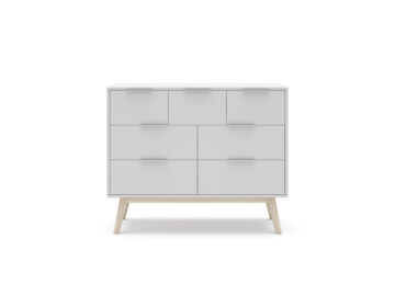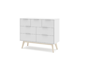 Ta model komode vključuje sedem predalov – štiri večje in tri manjše, kar omogoča odlično organizacijo in razdelitev shranjevanega blaga. Večji predali so idealni za shranjevanje oblačil, posteljnine ali večjih predmetov, medtem ko so manjši predali primerni za manjše predmete, kot so dodatki, dokumenti ali pisarniški material.