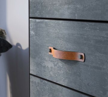 Predalnik Dark Metal ima pet predalov. Razdeljeni so na manjše enote. Predali imajo ročaje iz umetnega usnja svetlo rjave barve. Predali se mehko zapirajo. Zaščiten je z melaminom, odpornim proti praskam in prahu.