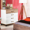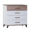 Minimalistično oblikovan predalnik Natural odlikuje prilagodljiva kombinacija lesa in bele barve. Je sodobno zasnovan; za shranjevanje ima štiri prostorne predale, delujoče na mehanizem tihega zapiranja. Okvir je izdelan iz oplemenitene iverne plošče, zaščitene z ABS robnim trakom. Ročaji so kovinske, nogice pa so narejene iz PVC mase.