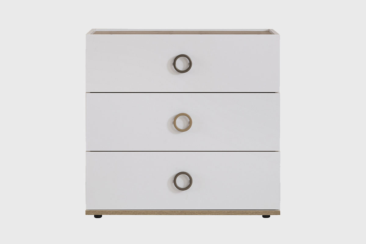 - Skupni dizajn in usklajenost: Predalnik je skrbno zasnovan, da se estetsko in funkcionalno ujema s celotno kolekcijo “VESOLJE”. Njegova moderna oblika in barvna paleta se harmonično vklapljata v sodobno mladinsko sobo.
