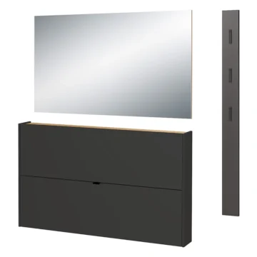 1. Omarica za čevlje Ameca 1392 združuje sodoben dizajn, optimalno funkcionalnost in kompaktno globino, zato je idealna za organizacijo obutve v hodniku ali predsobi. Kombinacija taupe zelene barve in dekorja hrasta Navarra prostoru doda toplino in sodoben videz.