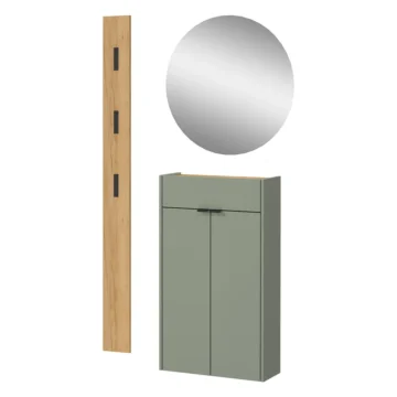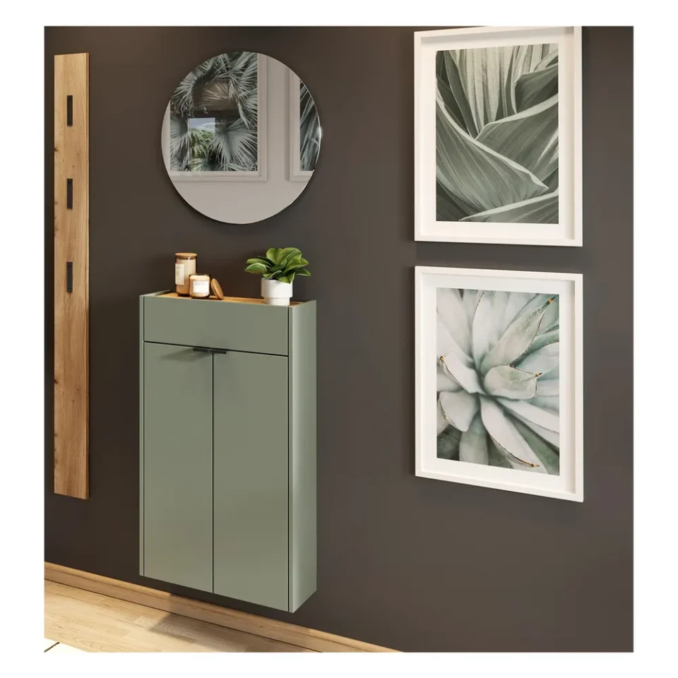 1. Večnamenska omarica Ameca 1397 je kompaktna in estetsko dovršena rešitev za predsobe, hodnike ali manjše prostore. S svojo elegantno barvno kombinacijo in kakovostnimi materiali ponuja zanesljivo shranjevanje ter enostavno vključitev v sodobne interierje.