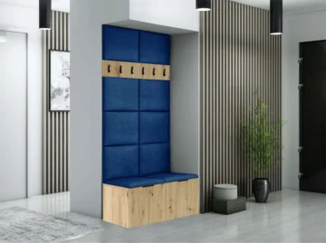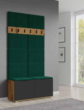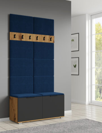 - Obešalnik, ki ga lahko izberete v hrast ali beli barvi, obešalne kljukice so kovinske in črne barve