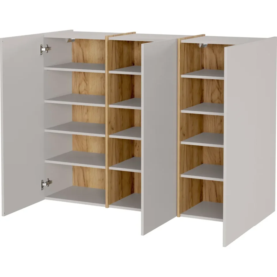 - Večnamenska omarica GW-Libbiano Plus 3298 združuje sodoben dizajn z izjemno funkcionalnostjo in prostornostjo. S kombinacijo elegantne barve kašmir in dekorja Navarra hrasta prinaša toplino ter prefinjenost v hodnik, predsobo ali drug bivalni prostor.