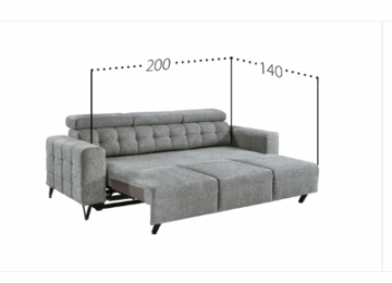 - Ležišče: izvlečno, dimenzije 140 × 200 cm.