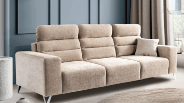 Za uravnotežen videz kombinirajte sedežno v nevtralnem odtenku z dvema dekorativnima blazinama v kontrastni teksturi (npr. velur ali pletenina) in klubsko mizico v toplem lesu. V manjših prostorih izberite svetlejšo tkanino in zračne nogice, da bo prostor deloval bolj odprto.