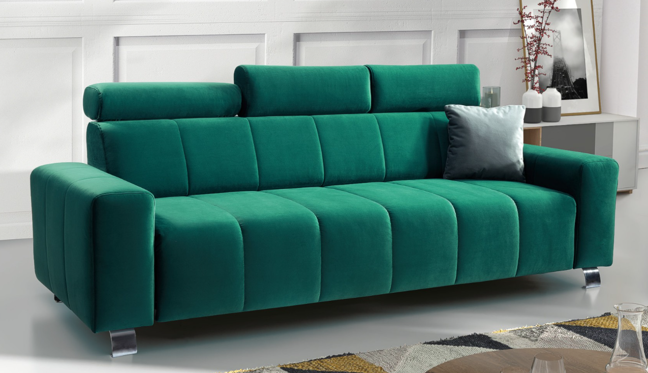 RUBIO raztegljivi trosed je sodobna in izjemno udobna sedežna garnitura, zasnovana z mislijo na funkcionalnost in prilagodljivost. Standardno je opremljena z nastavljivimi vzglavniki, ki omogočajo stopnjevanje naklona, da se popolnoma prilagodijo vašim potrebam. Visok naslon in odlična funkcija ležanja zagotavljata udobje, ki ga redko najdemo pri klasičnih kavčih. Sedežna garnitura je opremljena s funkcijo spanja z ležiščno površino 140 × 200 cm. Zaradi visokih nog lahko pod sedežno brez težav zapelje robotski sesalnik z višino do 95 mm, kar olajša vsakodnevno čiščenje.
