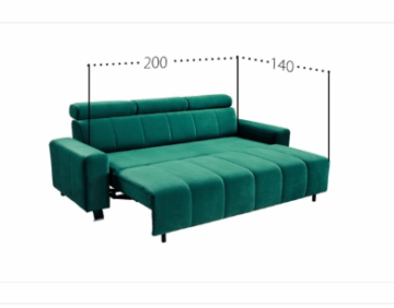 - Ležišče: izvlečno, dimenzije 140 × 200 cm.