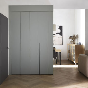 - dodamo lahko levo bočno stranico/korpus omare v isti ali drugačni barvi kot je barva vrat