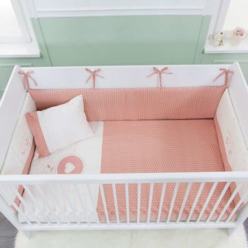 Posteljnina Romantic Baby je narejena iz najboljšega bombaža in je sestavljena iz prevleke za vzmetnico, zaščitne ograje, odeje in prevleke za vzglavnik. Nežni toni in okrasno vezenje ji dajejo poseben čar.