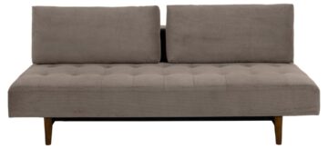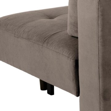 - Materiali: Oblazinjena v bež tkanino Wind (70) z rebrastim videzom in kvadratnimi šivi, podnožje iz dimljenega lakiranega kavčukovca.