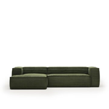 Sedežna garnitura Blok v zeleni barvi z levim počivalnikom – 300 cm je idealna izbira za prostorne dnevne sobe. Garnitura obsega trosed dolžine 300 cm, kar jo naredi popolno za udobno druženje in sprostitev. Zeleni žametni material je trpežen in enostaven za čiščenje, kar omogoča brezskrbno uživanje v trenutkih sprostitve.