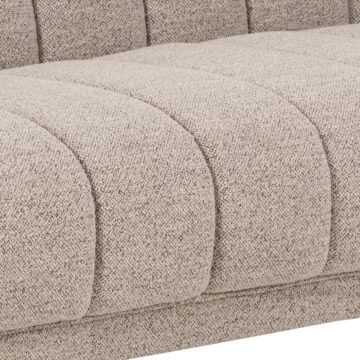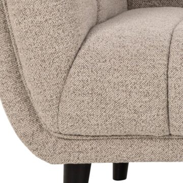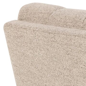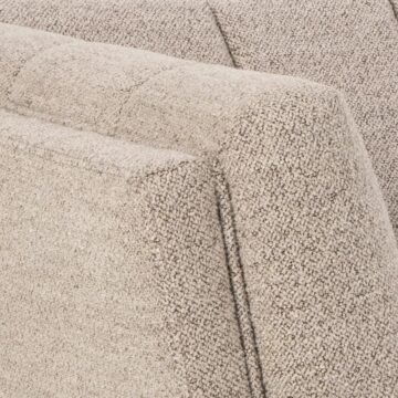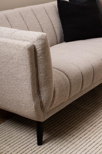 - Luksuzni materiali: Oblikovan je iz bež bouclé tkanine, ki ima bogato teksturo in mehak otip. Verticalno šivanje dodatno obogati izgled in ustvarja zanimivo igro tekstur.