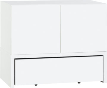 Praktična shranjevalna enota Young users ima dvoje vrat in podnožje s predalom. Shranjevalna enota je v beli barvi podnožje s predalom pa lahko izbirate med dvemi barvami.