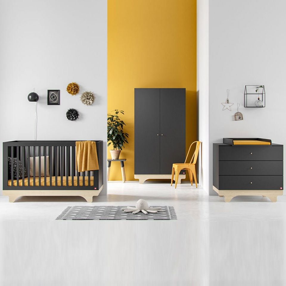 Izrazito trenodovske barve sobice za dojenčke Playwood se čudovito podajo vsem sodobno oblikovanim interierjem. Pohištvo je kvalitetno izdelano z izjemnim občutkom za estetske zaključne detajle. Elementi so dvignjeni na nogice, kar daje pohištvu občutek zračnosti in lahkotnosti. Podnožja so narejena iz masivnega lesa, ostalo pa je narejeno iz oplemeniteno iverno ploščo. Za posteljico lahko dokupite dodatne pripomočke, s pomočjo lahko kasneje, ko jo otrok preraste preoblikujete v manjhno posteljo za malčka. Pri posteljici lahko odstranimo tri palice, da po potrebi lažje dostopamo do otroka. Tudi dno je prilagodljivo po višini, tako da se dno lahko nastavi na tri različne višine. Vrata omare in predali na komodi se mehko zapirajo. Barve: v celoti bela, bela v kombinaciji breze ali grafitna v kombinaciji z brezo.