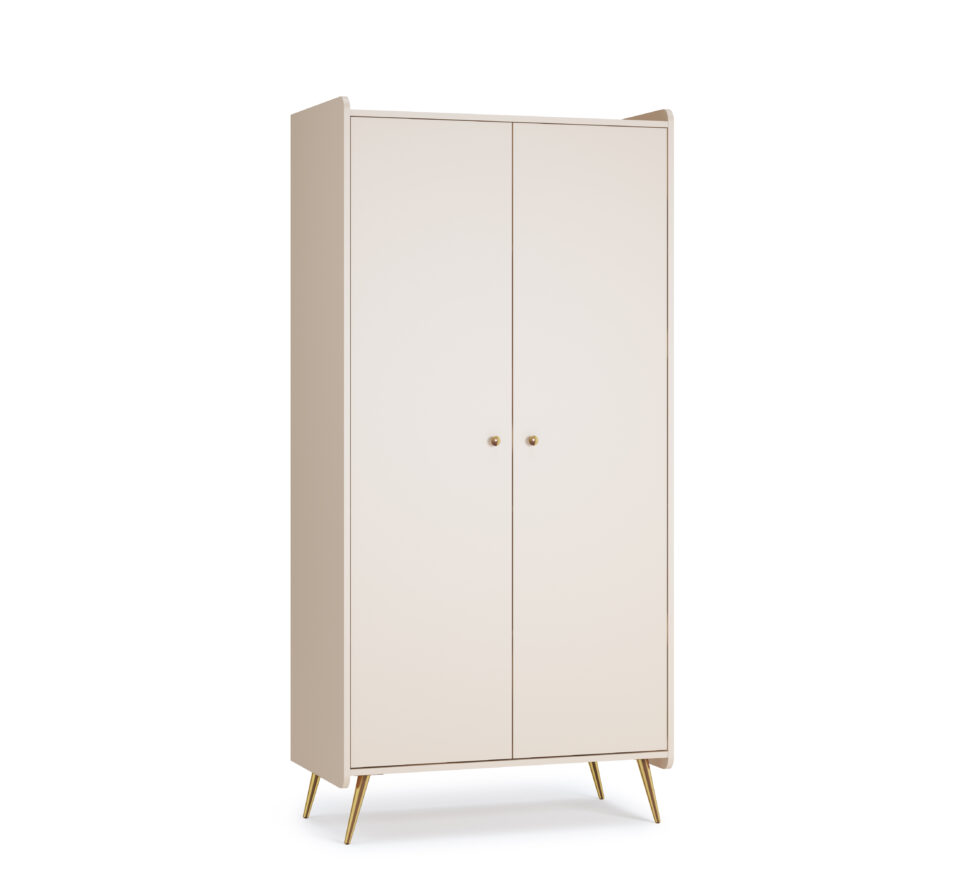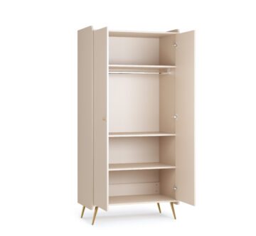 Omara zagotavlja obilico prostora za shranjevanje in ohranja lahkoten izgled zahvaljujoč poševnim kovinskim nogam. V notranjosti se nahajajo široka zgornja polica, obešalna palica ter dve dodatni polici z nastavljivo višino. Vrata s sistemom Silent System omogočajo tiho zapiranje, zaobljeni robovi pa povečajo varnost pri uporabi.