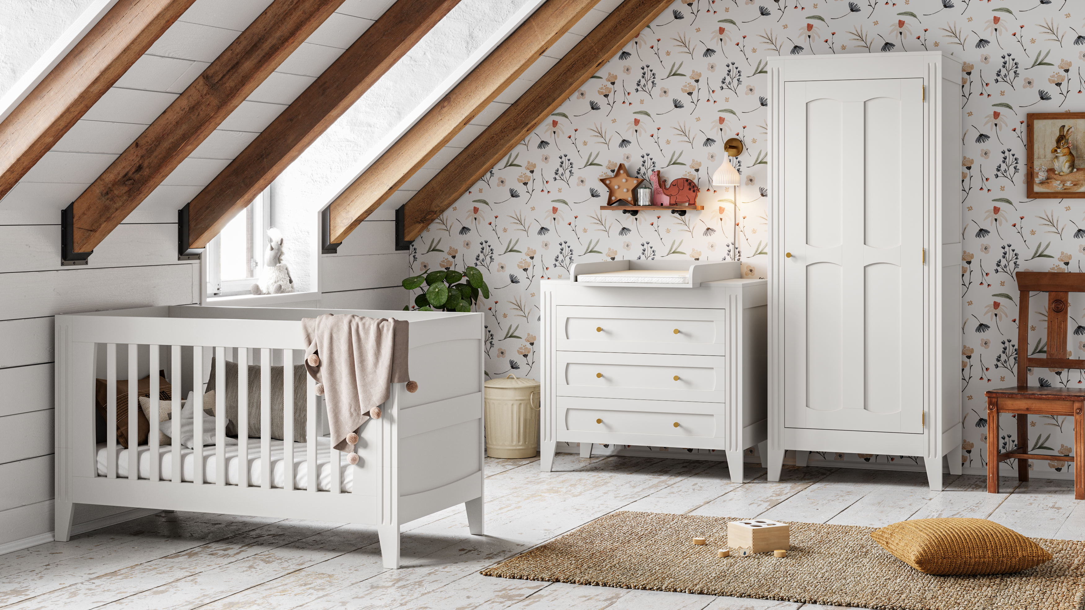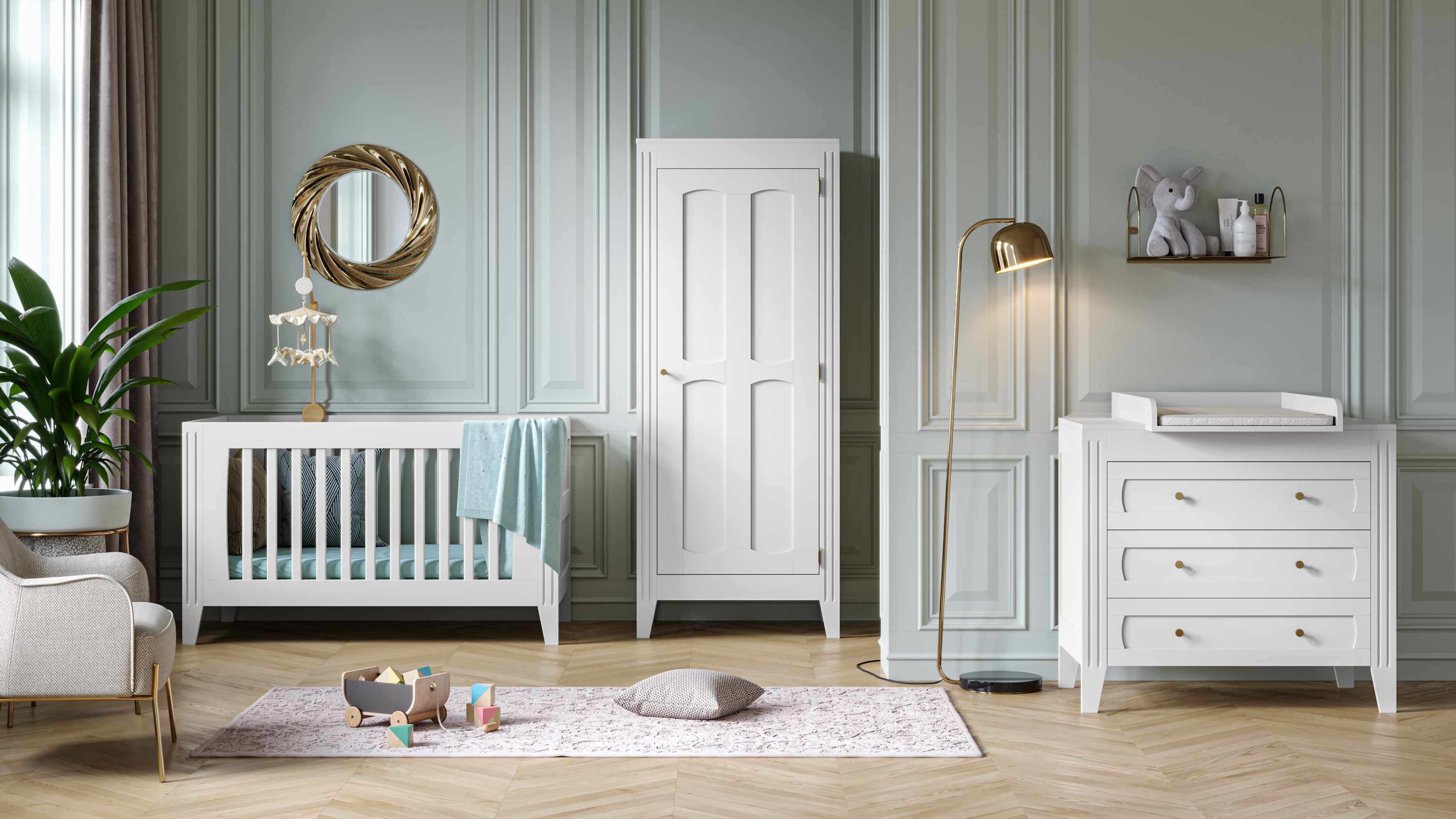 Sestav Milenne združuje tri najpomembnejše elemente sobice za dojenčke v usklajeno, funkcionalno in estetsko celoto. Klasični profili, nežne barve in premišljene rešitve ustvarijo prostor, ki je varen, praktičen in vizualno miren.