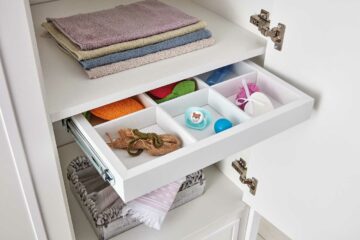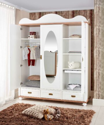 Elegantna in precizno oblikovana kolekcija Tina ob vizualni izpopolnjenosti izstopa tudi s funkcionalno in prostorno zasnovo. Sestavljajo jo sodobno oblikovani izdelki, delujoči na mehanizem mehkega in tihega zapiranja. Elegantno zaobljenost dopolnjuje in ščiti ABS robni trak. Obešalna palica garderobne omare vsebuje LED svetilo na senzor.
