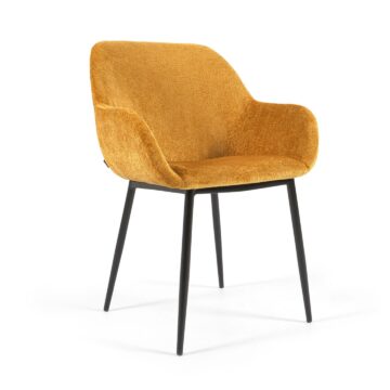 Sodoben stol Konna odlikujeta elegantna kombinacija barv in udoben dizajn s tapeciranim naslonom za hrbet in roke. Kovinske nogice so prašno lakirane, okvir iz iverne plošče pa je oblazinjen in oblečen v edinstveno tkanino. Dobavljive barve so rumena, bež in siva. Dimenzija (višina x širina x globina): 83/59/55 cm