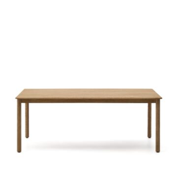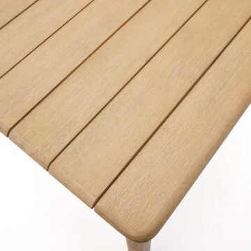 Lesena miza Sori (200 × 100 cm) iz 100 % masivnega lesa akacije je elegantna izbira za vsak zunanji prostor. Zahvaljujoč certifikatu FSC™ 100% zagotavlja odgovorno ravnanje z gozdovi in sledljivost izvora surovin. Površina z brušenim učinkom poudari naravno lepoto lesa in doda unikatno teksturo, ki se odlično poda tako v zunanje kot tudi notranje ambiente. Miza združuje odpornost, estetiko in trajnost.