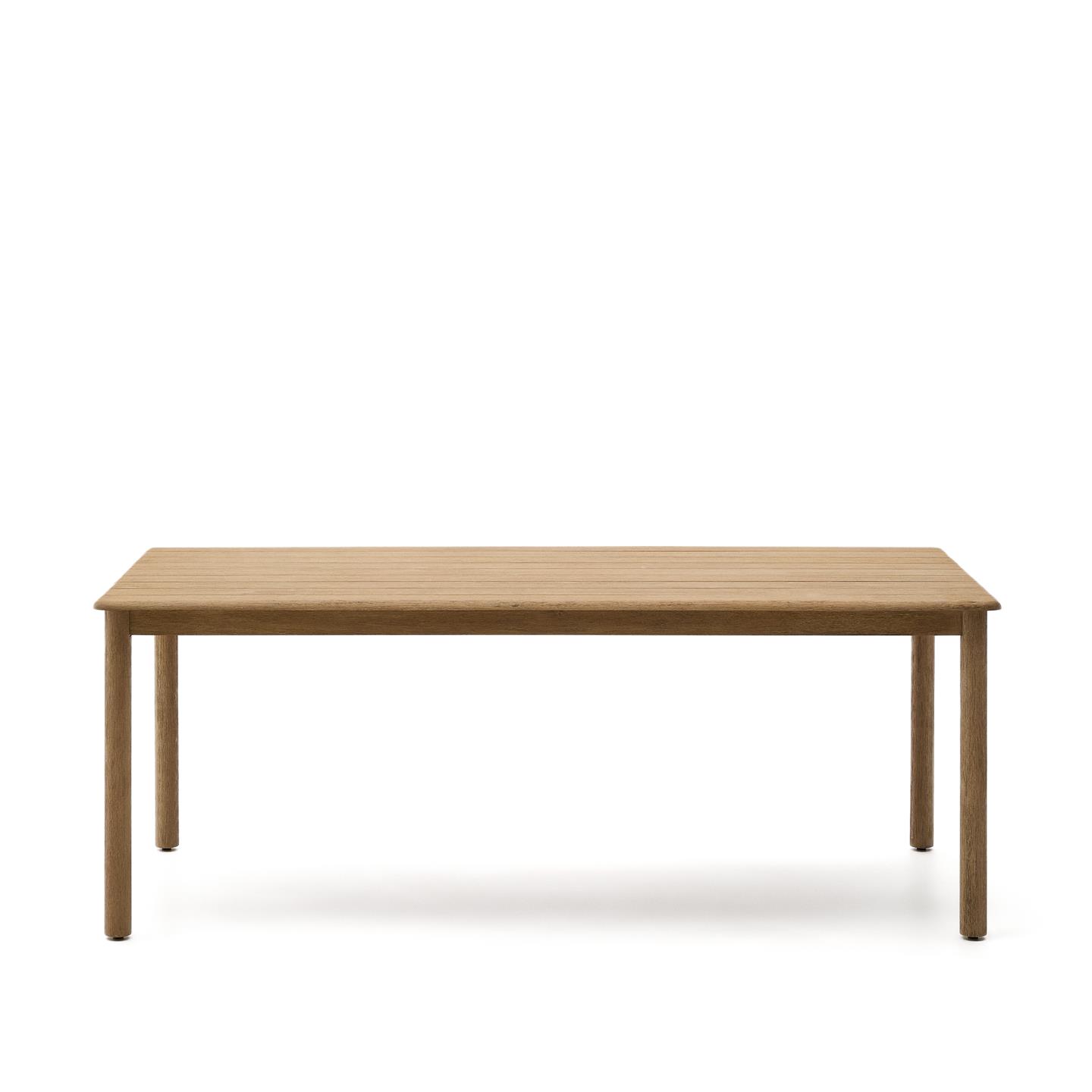 Lesena miza Sori (200 × 100 cm) iz 100 % masivnega lesa akacije je elegantna izbira za vsak zunanji prostor. Zahvaljujoč certifikatu FSC™ 100% zagotavlja odgovorno ravnanje z gozdovi in sledljivost izvora surovin. Površina z brušenim učinkom poudari naravno lepoto lesa in doda unikatno teksturo, ki se odlično poda tako v zunanje kot tudi notranje ambiente. Miza združuje odpornost, estetiko in trajnost.