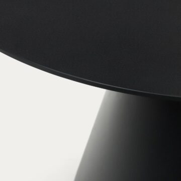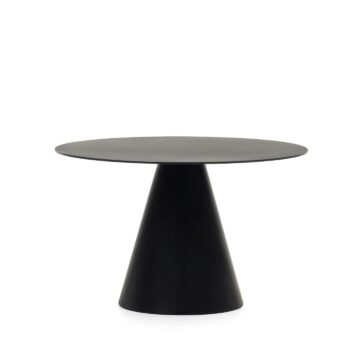 Miza Wilshire iz kaljenega stekla in kovine v mat črni barvi združuje minimalističen dizajn in industrijski značaj. Njene čiste, geometrijske linije sledijo sodobnim trendom ter prostoru dodajo eleganco in vizualno lahkotnost. Okrogla oblika premera 120 cm je idealna za sproščena druženja, večerje ali pijačo po obroku.