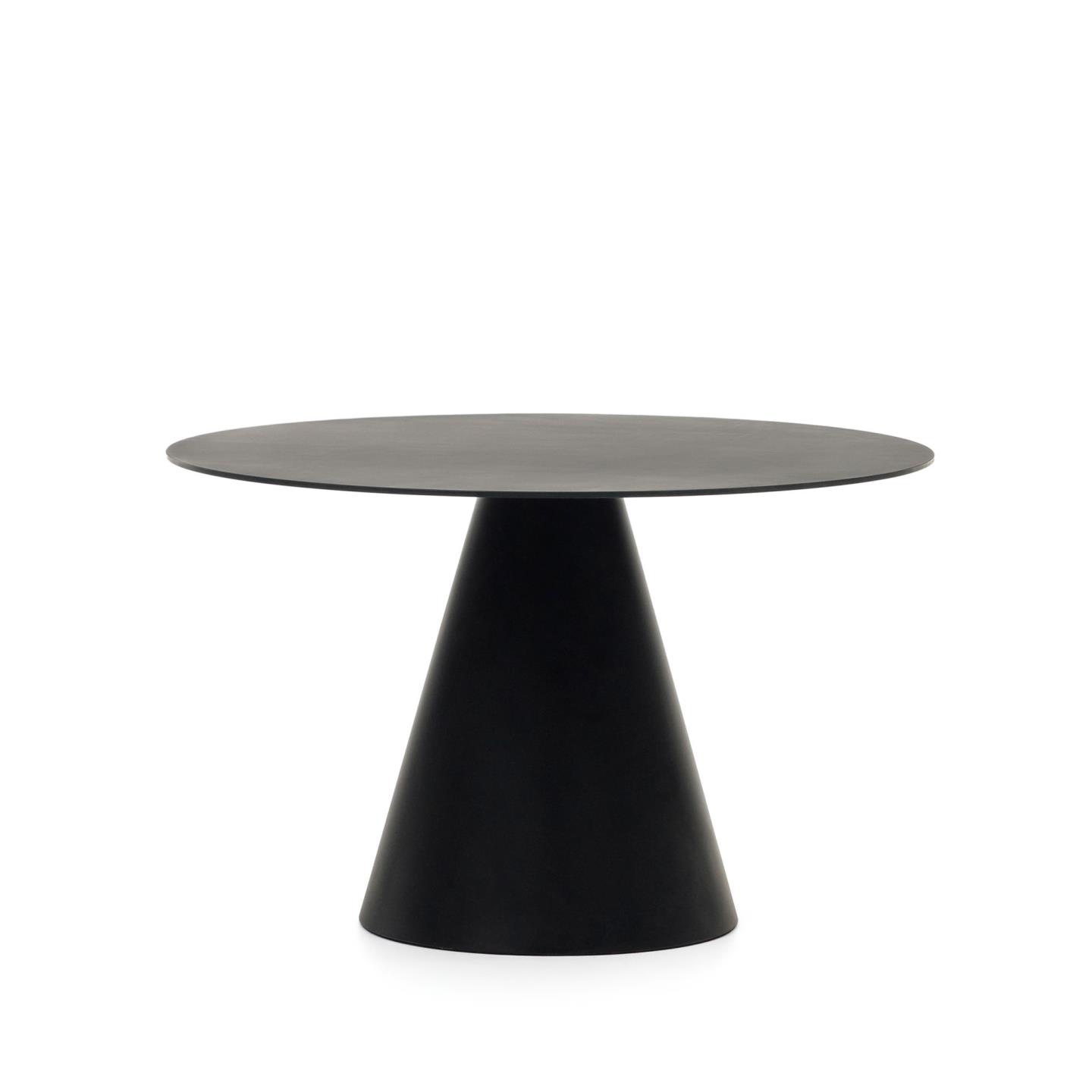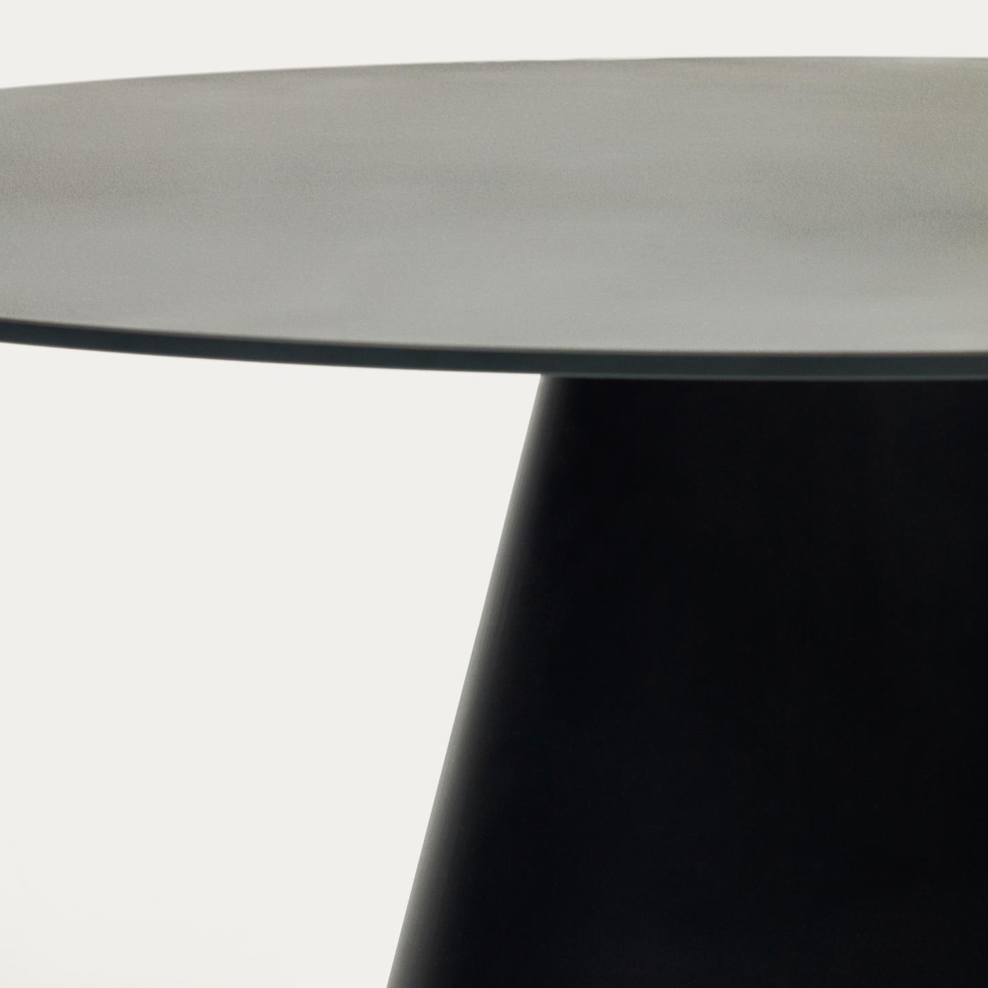 Miza Wilshire iz kaljenega stekla in kovine v mat črni barvi združuje minimalističen dizajn in industrijski značaj. Njene čiste, geometrijske linije sledijo sodobnim trendom ter prostoru dodajo eleganco in vizualno lahkotnost. Okrogla oblika premera 120 cm je idealna za sproščena druženja, večerje ali pijačo po obroku.