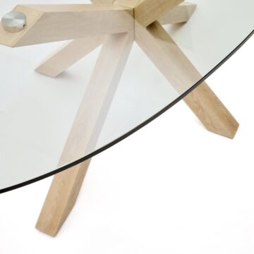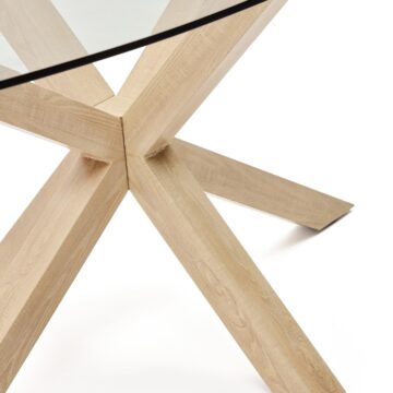 Miza Argo je popolna izbira za posebne trenutke in prijetna druženja z družino ter prijatelji. S svojo prozorno stekleno površino in jeklenimi nogami z učinkom lesa združuje sodoben videz z naravno toplino, zaradi česar je idealna za različne jedilne prostore.