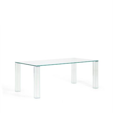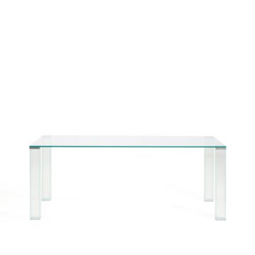 Jedilna miza Adularia iz prozornega kaljenega stekla (200 × 100 cm) je popolna izbira za sodoben interier, kjer želiš ustvariti občutek prostornosti in lahkotnosti. Zaradi minimalističnega dizajna z ravnimi linijami in elegantnimi robovi se brez težav zlije z različnimi stili opremljanja.