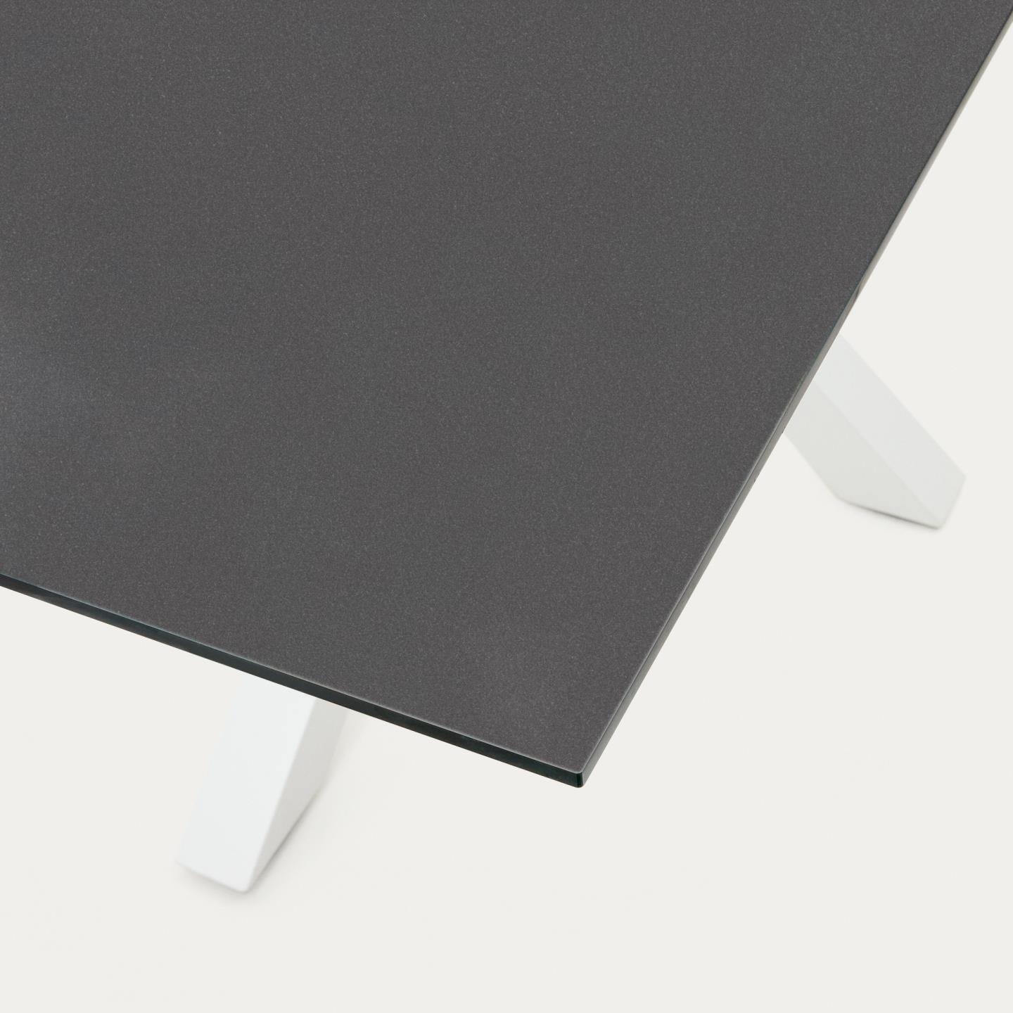 Miza Argo iz satiniranega črnega stekla in jeklenimi nogami s črnim zaključkom, 160 x 90 cm, je idealna izbira za družinska kosila, praznovanja ali sproščena srečanja s prijatelji. S kombinacijo kakovostnih materialov in sodobnega dizajna bo elegantno dopolnila jedilnico ali dnevni prostor.