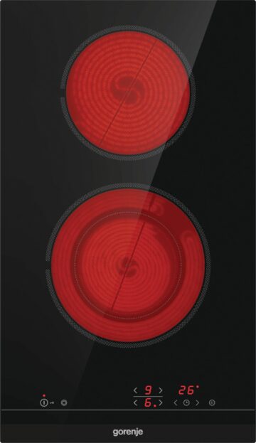 ECT322BCSC ponuja dve HiLight ogrevalni površini z različnimi premeri in močjo: spredaj je dvokrožna Ø 12/18 cm s 0,7/1,7 kW in zadaj Ø 14,5 cm s 1,2 kW.