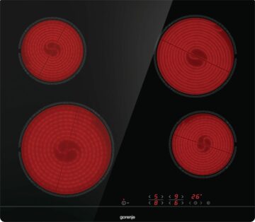 Mere kuhališča (Š×V×G) so 59,5 × 5,4 × 52 cm, z brušenimi robovi kuhališča, ki dodajo eleganten videz. Način upravljanja je enostaven, z upravljanjem na dotik, ki omogoča natančno nastavljanje temperature kuhanja.