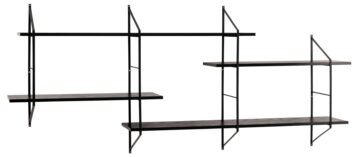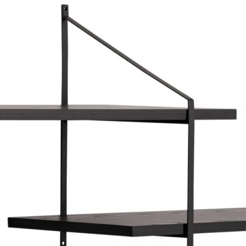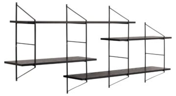 Stenska polica Belfast prinaša sodoben in eleganten dizajn, ki izkorišča asimetrijo za privabljanje pozornosti na razstavljene predmete. Inspirirana s spojem industrijskega in japandi sloga, je ta polica izdelana iz tanke črne kovinske konstrukcije in vsebuje štiri nastavljive police v videzu črnega pepela. Ta kombinacija ustvarja prijetno vzdušje v vsakem domu.