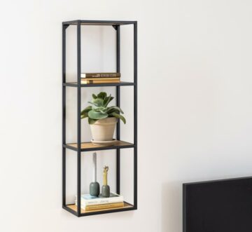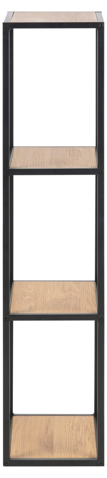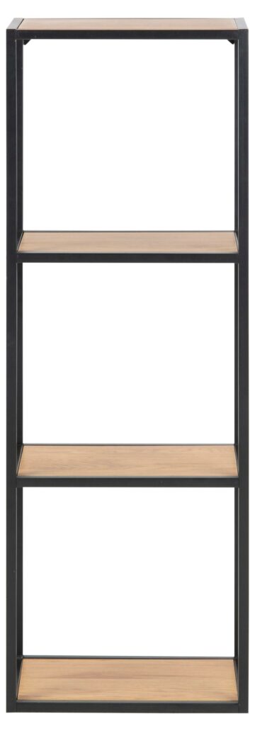 Preprost stenski knjižni poličnik Seaford se sklada in ujema v vsakem prostoru. S svojimi 2 policami izdelanimi iz oplemenitene iverne plošče, v odtenku divjega hrasta, je očem še bolj preprost. S svojim nevtralnim kovinskim ogrodjem, ki je prašno barvan v črno mat barvo pa poskrbi za domač videz v prostoru.
